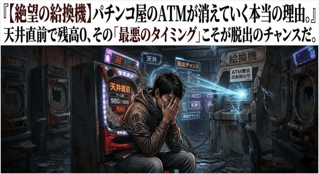 【絶望の給換機】パチンコ・パチスロ店のATMが消えていく本当の理由。天井直前で残高0、その「最悪のタイミング」こそが脱出のチャンスだ。