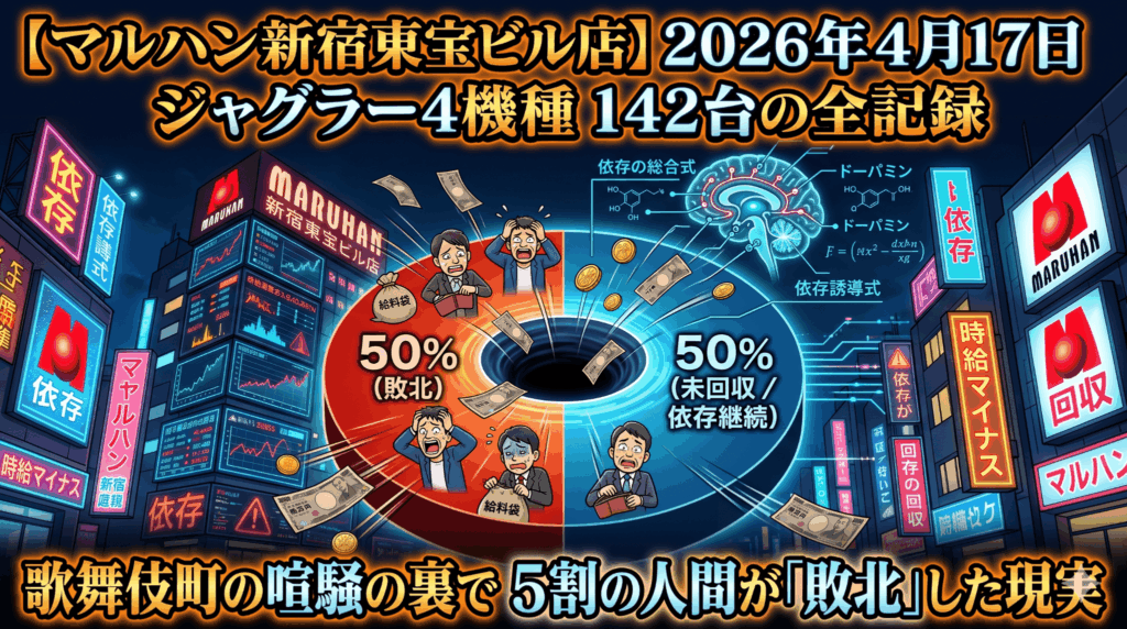 【マルハン新宿東宝ビル店】2026年4月7日、お祭り(7の付く日)の正体は「平均時給55円」。マイジャグラーⅤ全48台のデータが暴く冷徹な真実
