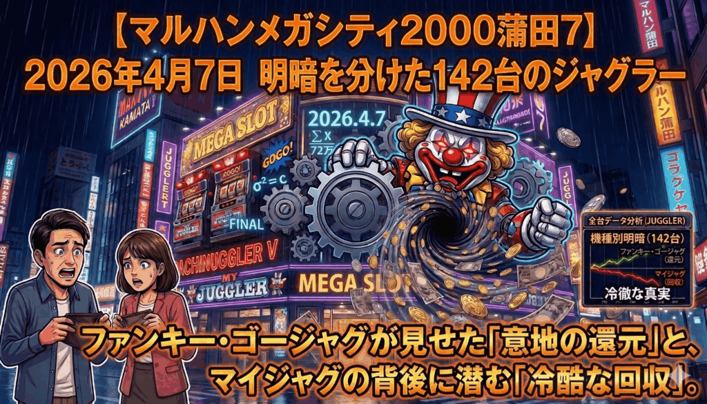 【マルハンメガシティ2000蒲田7】2026年4月7日、明暗を分けた142台のジャグラー。ファンキー・ゴージャグが見せた「意地の還元」と、マイジャグの背後に潜む「冷酷な回収」