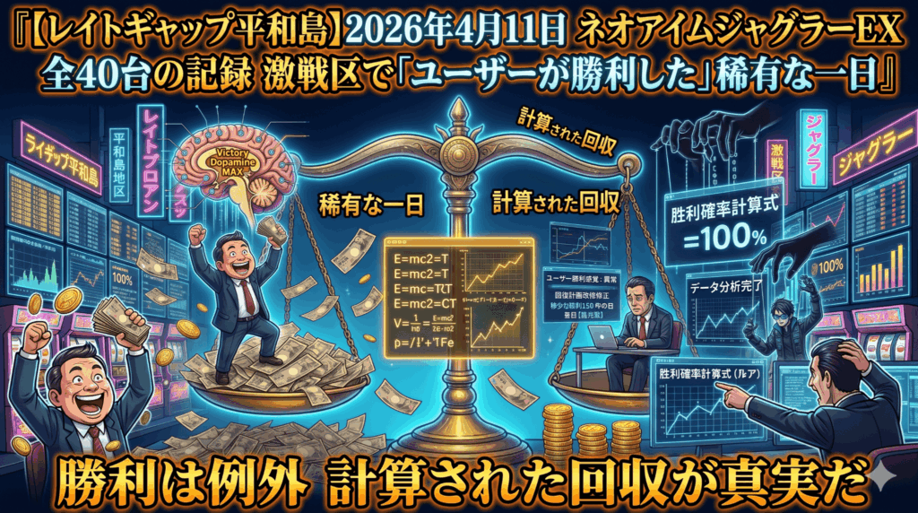 2026年4月1日。 新年度の幕開け、期待感という名の嘘が街に溢れる中、池袋の巨大ホール『楽園池袋店』で行われたのは、冗談では済まされない「容赦ない回収」でした。 看板機種である「マイジャグラーⅤ」「ネオアイムジャグラーEX」合計62台から、悲惨な結...