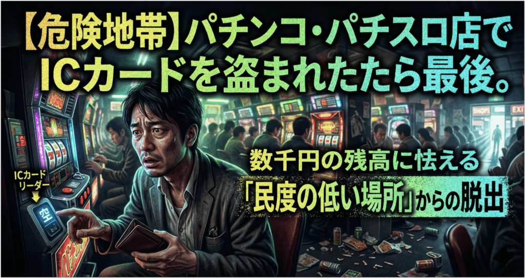 「ICカードを抜き忘れた!」 トイレから戻った瞬間に血の気が引くあの感覚。 サンドの中を確認し、カードが消えていた時の絶望感。 パチンコ・パチスロ店は、最新のスマート遊技機が並ぶ華やかな空間にも見えますが、 その実態は「他人の隙を突いて数千円... -