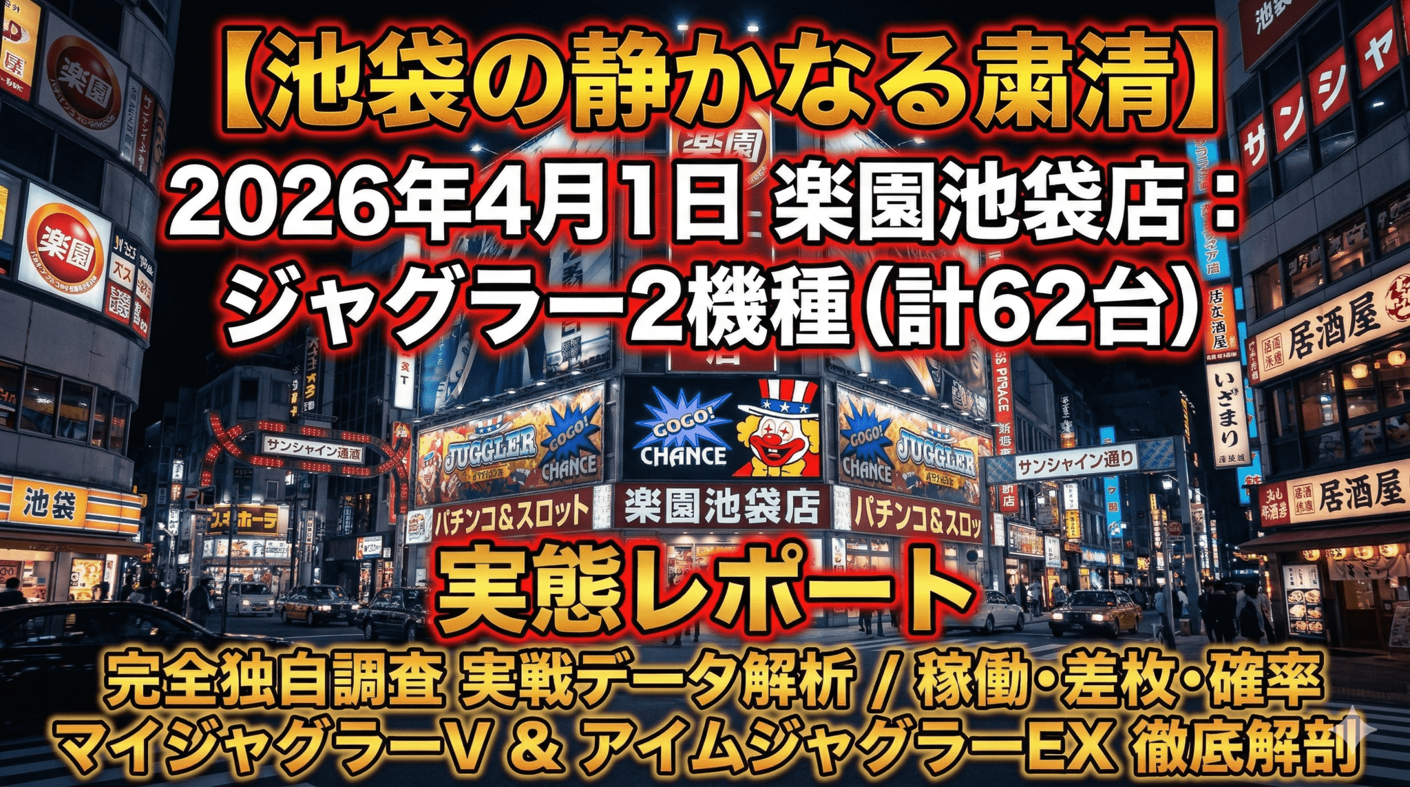 【池袋の静かなる粛清】2026年4月1日 楽園池袋店:ジャグラー2機種(計62台)実態レポート